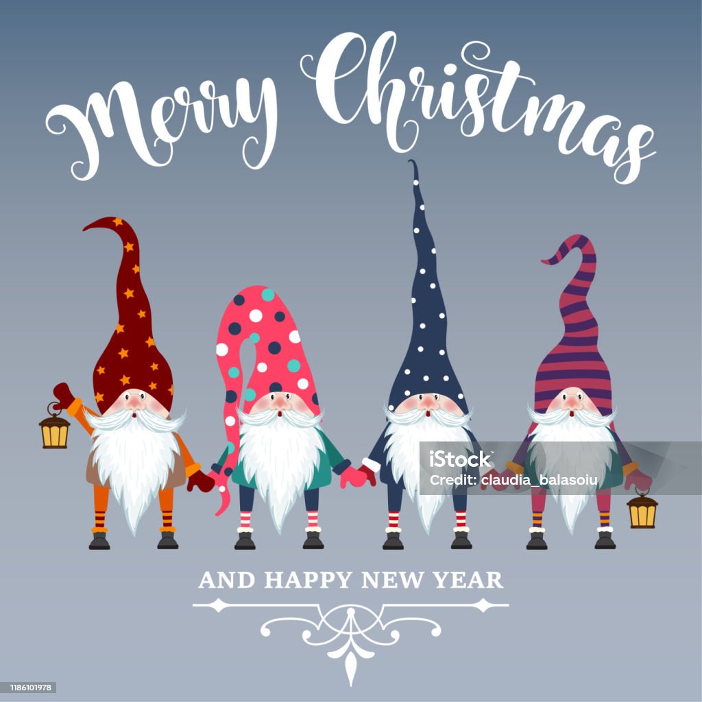 Beautiful Flat Design Christmas Card With Gnomes Christmas Poster